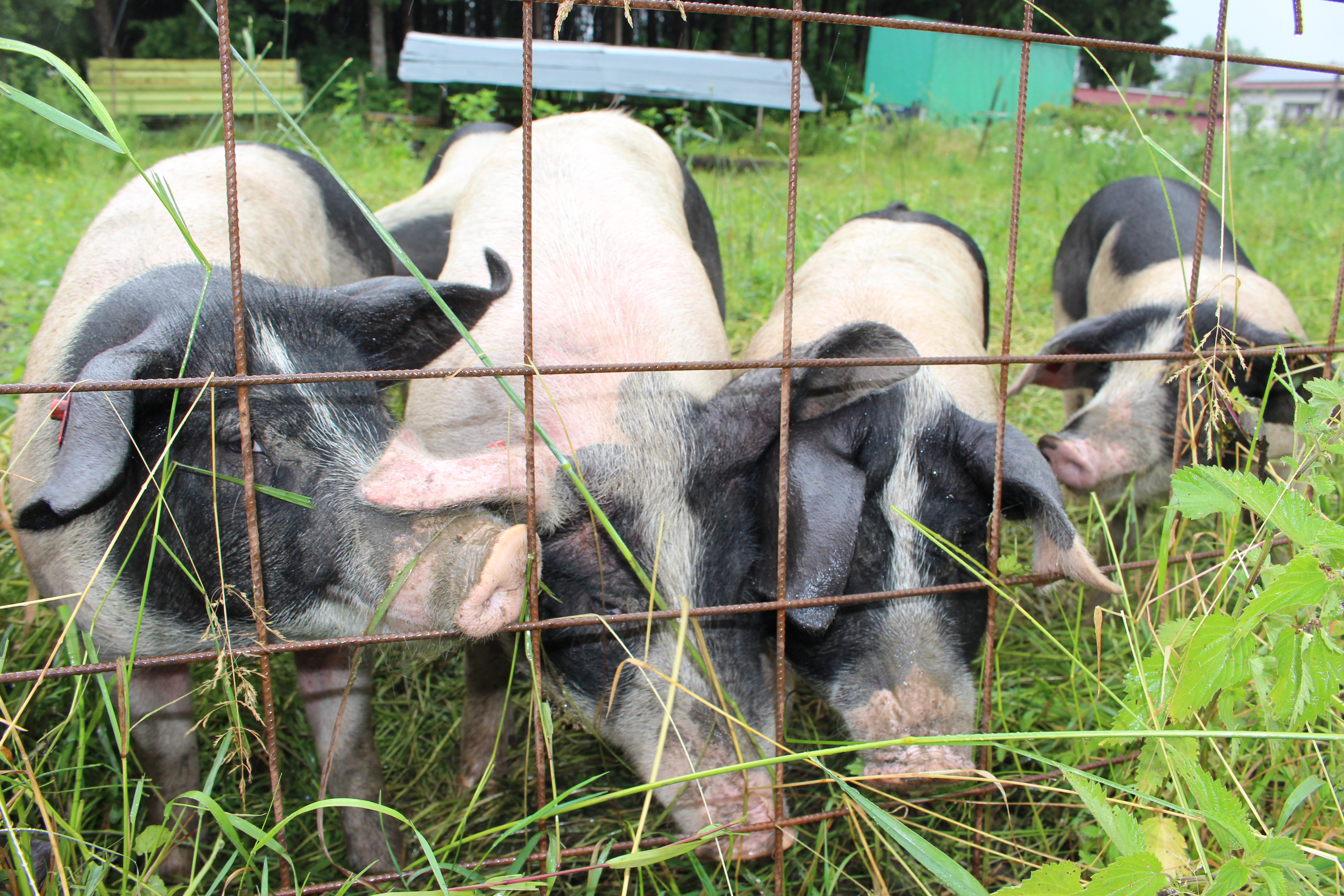 Diese Schweine haben gerade einen neuen Teil der Wiese bezogen. Leider nicht auf dem Bild, weil fotoscheu: Ein Wollschwein, das aussieht wie eine Sau mit Dauerwelle.