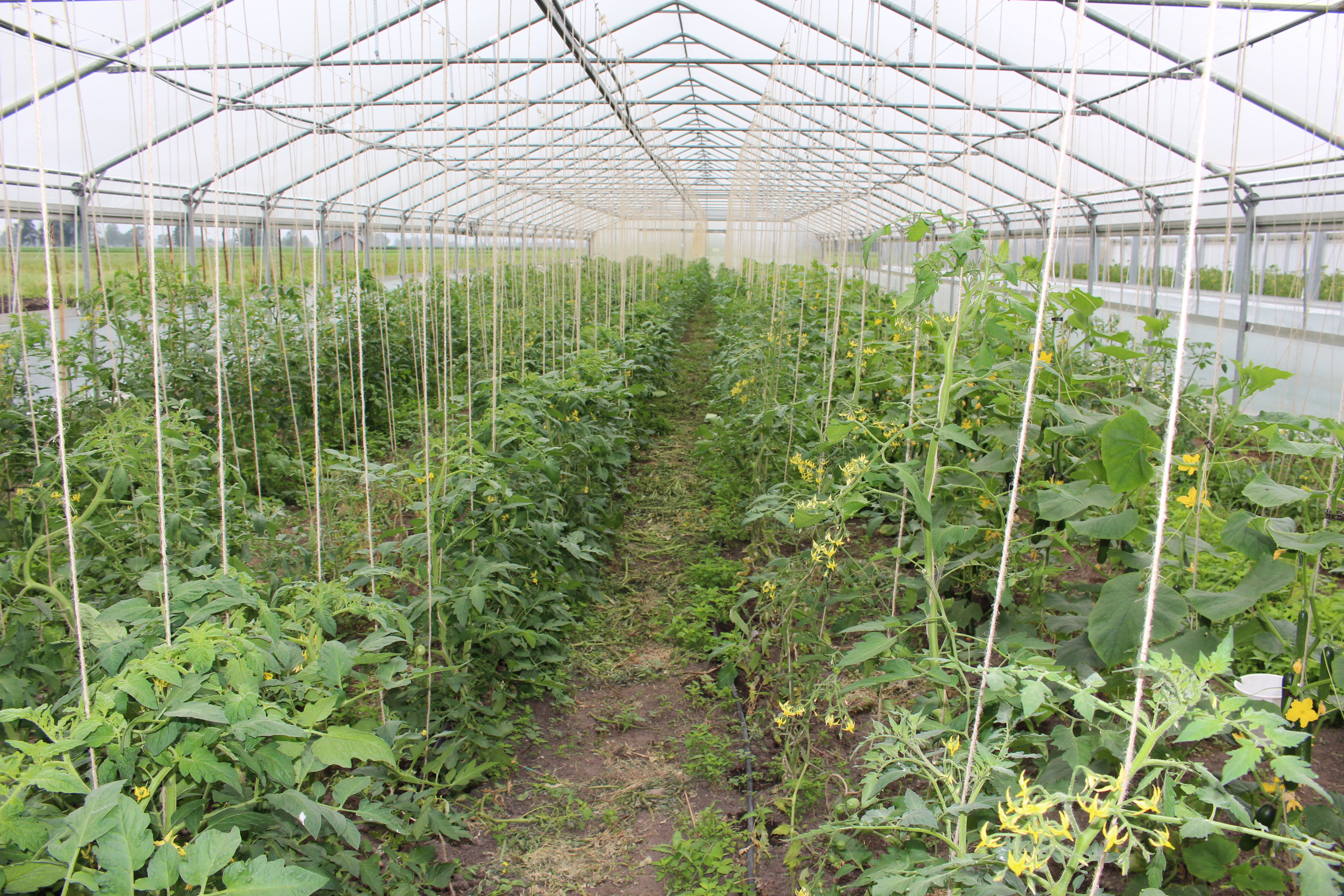 Rund um den Hof stehen Gewächshäuser. Die meisten Felder sind ein paar Autominuten entfernt.