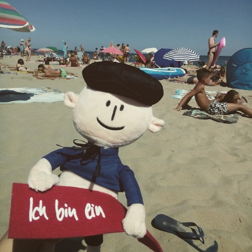 • und natürlich – seit Neuestem: Heiner! (Auf dem Bild unten freut er sich, dass wir endlich am Mittelmeer angekommen sind.)